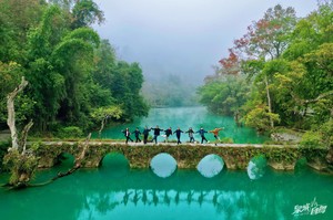 在贵州省荔波县的崇山峻岭中,有一块遗落在人间的绿宝石——荔波小七孔。水在石上淌,树在水中长,人在画中游。这里的水色惊艳,一定会改变你对水色的认知,宛如一块绿翡翠,温润透澈,让人望一眼,就会念念不忘。