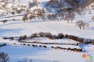 当扬鞭而起的牧马人,驱赶着马群在皑皑白雪上奔跑,鬃毛、马尾、溅雪、哈气的画面气势磅礴,这马踏飞雪的盛景,让北方雪原雄浑和粗犷的一面淋漓尽致。